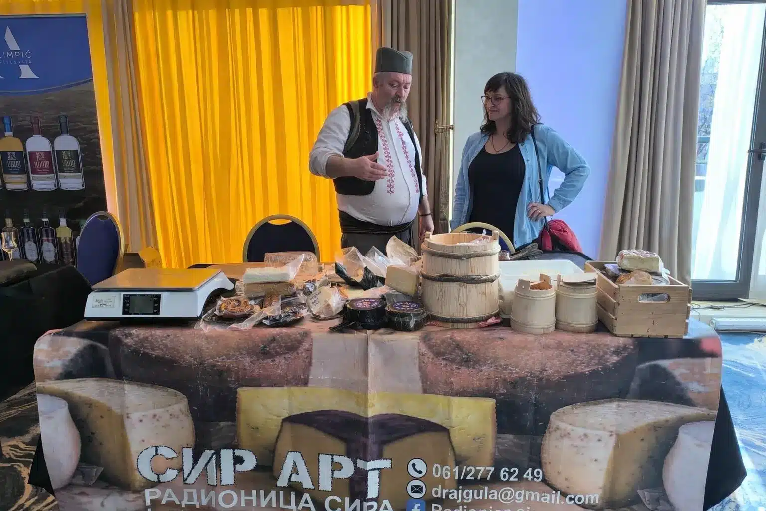 Kako uz finu kapljicu uvek ide neko dobro meze ovde se našao i proizvođač ekskluzivnih vrsta sira Jovica Radovanović sa Uba o čijem ćemo umeću u pravljenju sireva posebno pisati. Ovaj štand je plenio pažnju i svi su rado prilazili da probaju njegove neobične sireve.