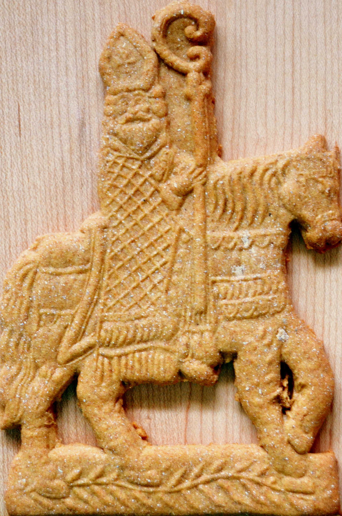 Ono što ga čini jedinstvenim osim začina je njegov izgled. Uz pomoć drvenih kalupa na testo su se utiskivali motivi koji su prikazivali figure i prizore vezane za Svetog Nikolu: vetrenjače, brodove, životinje, ali i samog sveca ili kako se na holandskom kaže Sinter Klaas... Ako vas je to podsetilo na Santa Claus – imate odličan osećaj za jezike jer je engleski naziv za Deda Mraza nastao u Americi i baš upravo od holandskog imena Sinter Klaas.